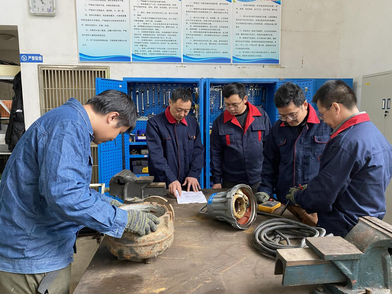 入職二十余年來,通過公司的培養(yǎng)和自己的努力,郭毅斌同志取得了裝配鉗工高級技師、電焊工高級工、機(jī)電助理工程師等多項(xiàng)職稱和職業(yè)資格證書。由于他吃苦耐勞、技術(shù)嫻熟、業(yè)務(wù)能力強(qiáng),先后被公司任命為機(jī)修班班長、部門副經(jīng)理、技能大師工作室?guī)ь^人,從一名基層機(jī)修工轉(zhuǎn)變成公司大大小小上千臺設(shè)備的管理者。利用多年與設(shè)備打交道的經(jīng)驗(yàn),郭毅斌同志摸索制定出了一套符合公司實(shí)際需求的設(shè)備保養(yǎng)、巡檢、維修方案,建立健全了設(shè)備單機(jī)檔案和設(shè)備維護(hù)操作規(guī)范流程,并帶領(lǐng)班組對老舊設(shè)備和故障頻發(fā)的設(shè)備進(jìn)行技術(shù)升級改造,先后完成了6臺提升泵、6臺回流泵的冷卻水循環(huán)系統(tǒng)改造,3臺脫水機(jī)濃縮段改造,在降低設(shè)備故障率、提高生產(chǎn)效率的同時(shí)有效節(jié)約了成本,每年光耗材費(fèi)用就節(jié)約近20萬元。針對進(jìn)口設(shè)備檢修,他還帶領(lǐng)班組自制了十余種專用工具,其中有8項(xiàng)獲得了實(shí)用新型專利,不僅有效解決了過去進(jìn)口設(shè)備出現(xiàn)故障只能“等、靠、要”的老大難問題,僅設(shè)計(jì)專用工具這一項(xiàng)就為公司節(jié)約資金近60萬元。
