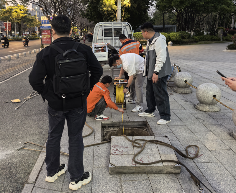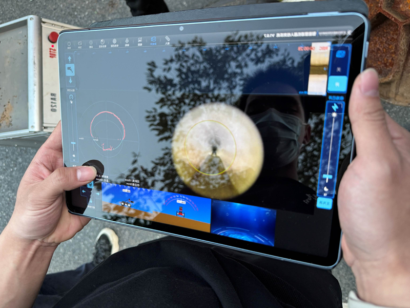 戶外實操環節中,華中科技大學技術團隊使用升級改進后的檢測設備,該設備是在傳統 CCTV 檢測機器人和聲吶檢測設備的基礎上搭載激光雷達技術。機器人在管道行進中使用高清攝像頭不斷拍攝管道內部影像,清晰捕捉管道內壁的裂縫、腐蝕等細節,同時,激光雷達發射激光束,快速掃描管道周邊空間,精準測量管道的管徑、管壁厚度等數據,聲吶檢測設備通過發射和接收聲波,探測管道管徑、淤積厚度等數據。將兩種設備采集到的數據,通過無線傳輸技術實時傳輸到平板電腦之后,再利用自主研發的軟件對各類數據進行融合處理,構建出排水管道的三維模型。